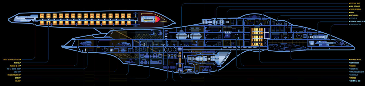 | Deck 6: Maschinenraum, Warpkern, Hauptdeflektor, Lagerraum |